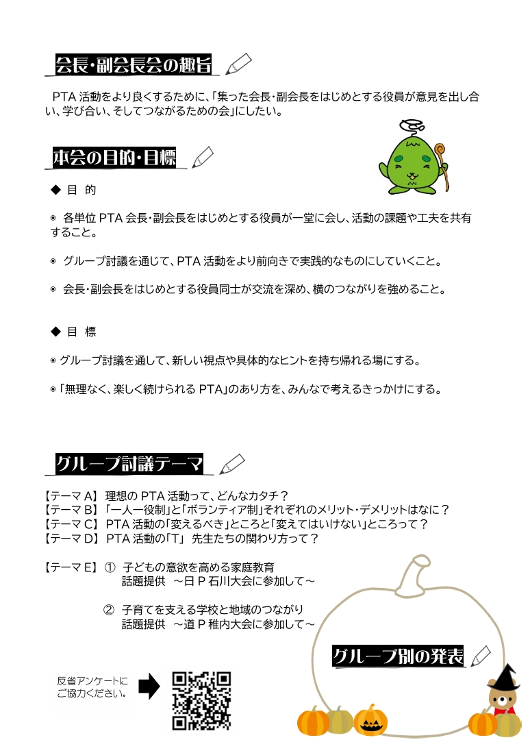 ●グループ討議を通じて、PTA活動をより前向きで実践的なものにしていくこと。
