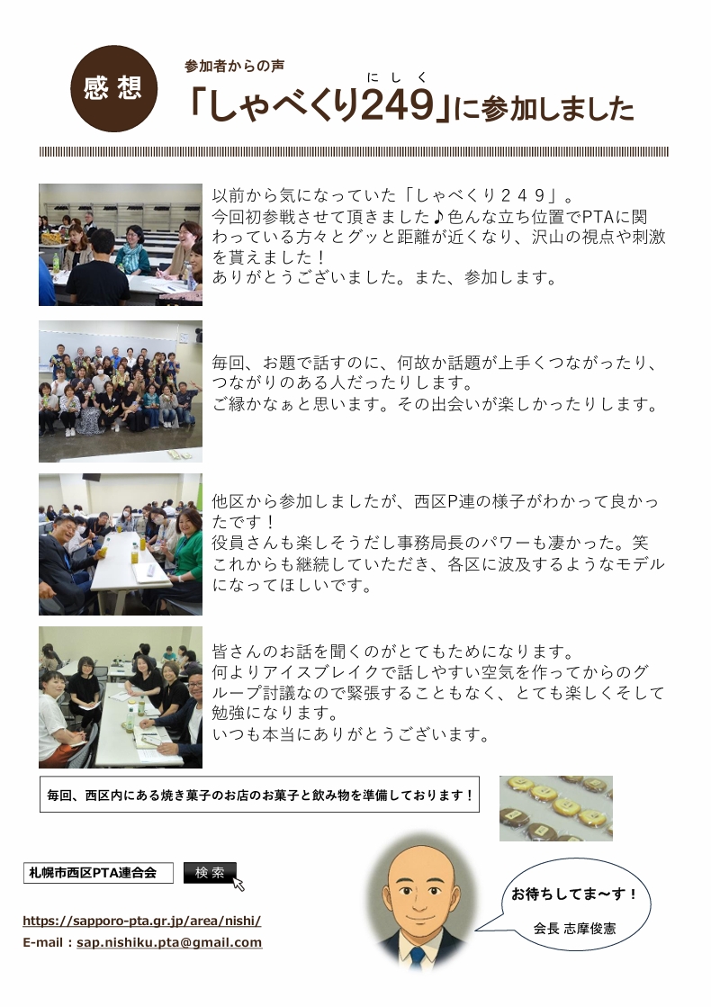 すっかり「しゃべくり249」のトリコになっている方も多く、他区からの参加も増えてきました!