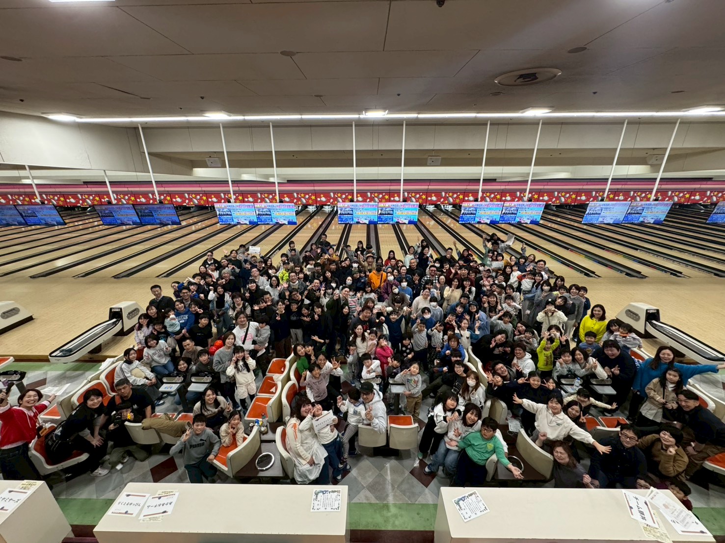 73チーム(家族)250名を超える皆さんとサンコーボウル全52レーンを使用してボウリングを楽しみました!