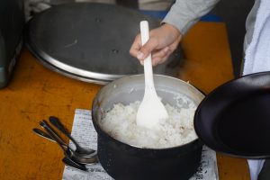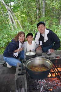 苦労して薪に火をつけ、自分たちで作ったカレーライスの味は格別でした。